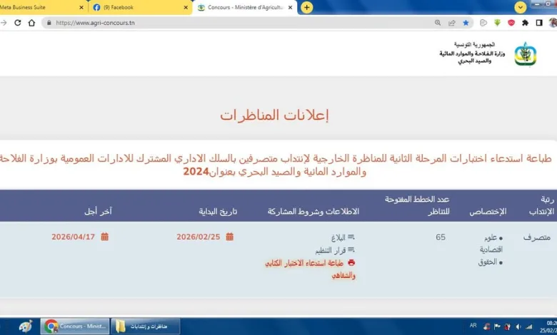 مناظرة خارجية لإنتداب متصرفين بالسلك الإداري المشترك للادارات العمومية بوزارة الفلاحة والموارد المائية والصيد البحري
