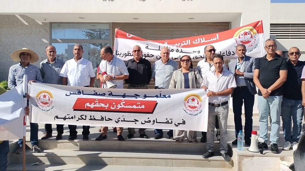 وقد نفذ مدرسي التعليم الإبتدائي في ولاية صفاقس تجمعا أمام مندوبية التربية صفاقس 1 ثم خرجوا في مسيرة احتجاجية وصولا إلى مقر الولاية، رافعين شعارات مختلفة أهمها ”الإضراب حق دستوري، شادين شادين في حقوق المربين ،متمسكون في حق المربي”.